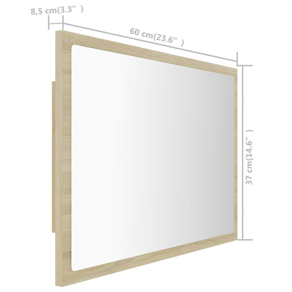 Sonoma tammi led-kylpyhuonepeili 60x8,5x37cm akryyli