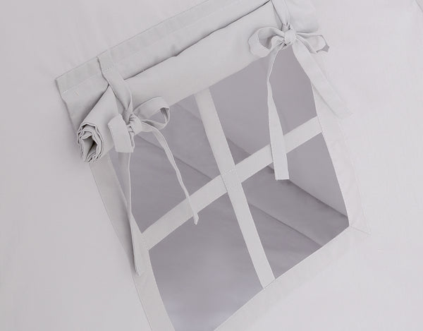 ✔ Sivuseinässä ikkuna verhoilla ja etuaukossa solmittavat sidokset