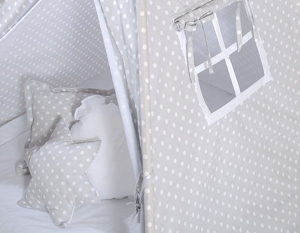 Leikkiteltta + Pehmuste - White Dots On Grey
