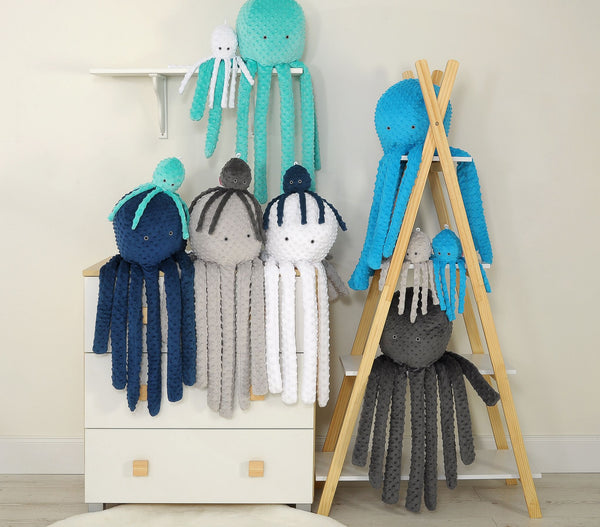 Tämä hurmaava ja pehmeä Cuddly octopus XXL on täydellinen kumppani lapsellesi nukkumaanmenoon ja halailuun. Sen pitkät ja mukavat lonkerot tarjoavat loistavaa tukea ja mukavuutta. Valmistettu korkealaatuisesta minky-fleecemateriaalista, tämä mustekala on erittäin pehmeä ja hellävarainen iholle.
