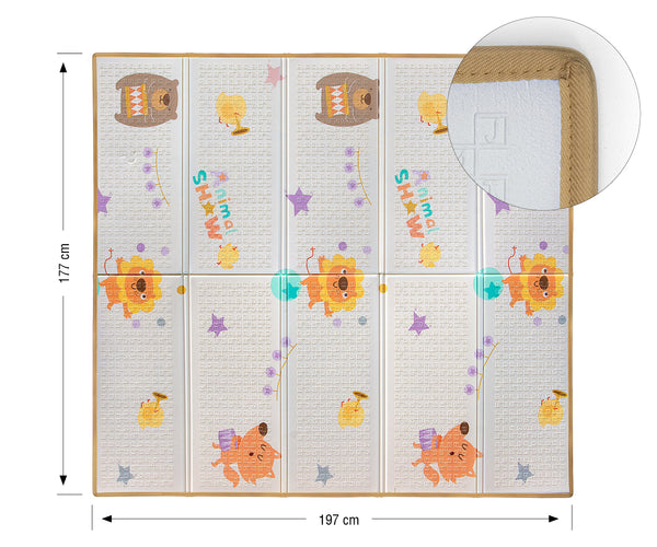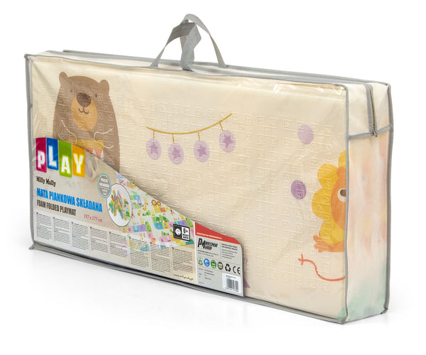 Play Fox T1 Taitettava Vaahtomuovi Leikkimatto on turvallinen ja mukava valinta lapsellesi. Tämä kaksipuolinen vaahtomuovimatto tarjoaa allergiavapaan ja liukumattoman pinnan. Matto eristää tehokkaasti kylmältä lattialta ja sen vedenkestävä pinta on helppo puhdistaa, mikä tekee siitä ihanteellisen huoneen sisustamiseen. Suuri joustavuus suojaa lapsesi hyvin kaatumisilta. Tuotteen ominaisuudet: kevyt ja kestävä, liukumaton, allergiavapaa, vedenkestävä, kääntöpuolinen, kätevä vetoketjullinen säilytyspussi. Ikäsuositus: 0+. Materiaali: XPE-vaahtomuovi. Tuote ei sisällä: formamidia, ftalaatteja, PVC:tä, bisfenoli A:ta. Takuu: 1 vuosi. Tekniset tiedot: paksuus 1 cm, pituus 197 cm, leveys 177 cm, paino 1,1 kg. PAKETIN KOKO: korkeus 41,5 cm, leveys 12 cm, pituus 92,5 cm, paino paketin kanssa 1,4 kg.