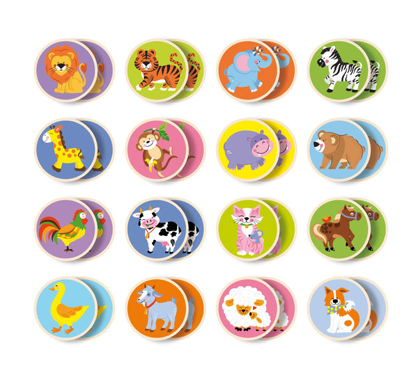 Viga Muistipeli Maatila on värikäs ja houkutteleva muistipeli, jossa on elävä printti ja hyvä viimeistely. Tämä peli ei vain tarjoa hauskaa ajanvietettä lapsille, vaan auttaa myös kehittämään motorisia taitoja ja muistia. Se on myös mainio perhepeli. VIGA-lelut tunnetaan niiden luonnollisuudesta, turvallisuudesta, opettavaisuudesta ja hauskasta leikkimisestä. Leiki Viga-lelujen kanssa ja auta lapsesi kehittämään loogista ajattelua ja motorisia taitoja. Nauti paljon iloa ja hauskuutta. Viga-lelujen maalit ja musteet ovat myrkyttömiä ja turvallisia lapsille. Kaikki lelut täyttävät Euroopan turvallisuusstandardit EN71 ja ASTM.