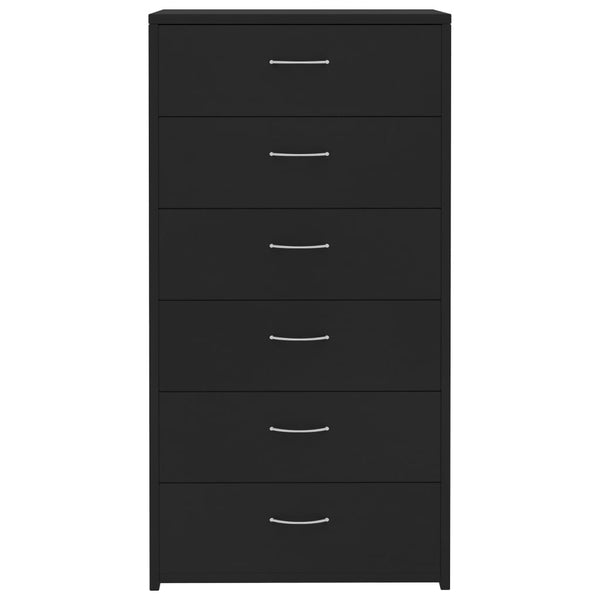 Musta lipasto 50x34x96cm 6 vetolaatikolla puinen