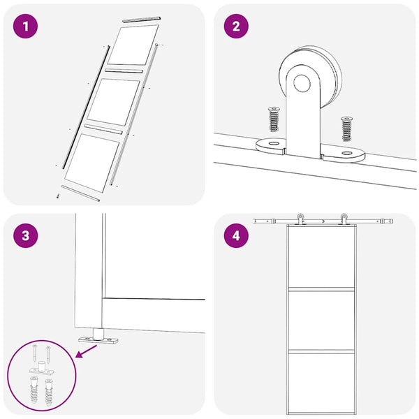 Ovi voidaan asentaa vain yhdessä liukuoven asennussarjan kanssa. Löydät yhteensopivat liukuoven asennussarjat kaupastamme (SKU: 145262-145263). Asennustavan varmistamiseksi voit lukea ohjekirjamme ovesta ja liukuoven asennussarjasta.