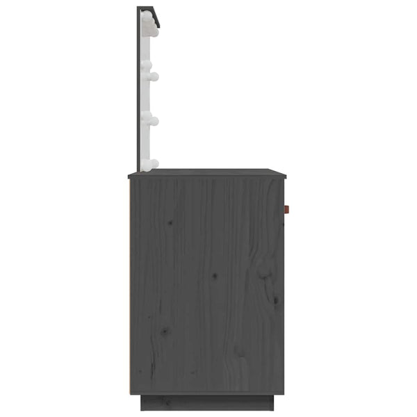 Harmaa pukeutumispöytä led-valoilla 95x50x133,5cm mänty