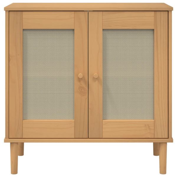 - Rottinkityylinen pinta: Säilytyskaapin etuosa on valmistettu käsityönä polyrottingista. Se on kaksisävyinen sekoitus vuosisadan puolivälin modernia ja boho tyyliä, joka lisää kodikkaan mutta tyylikkään kosketuksen tilaasi.