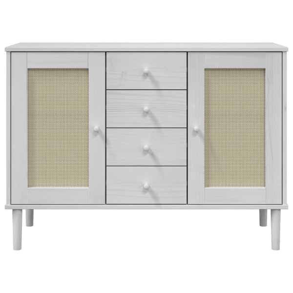 - Rottinkityylinen pinta: Säilytyskaapin etuosa on valmistettu käsityönä polyrottingista. Se on kaksisävyinen sekoitus vuosisadan puolivälin modernia ja boho tyyliä, joka lisää kodikkaan mutta tyylikkään kosketuksen tilaasi.