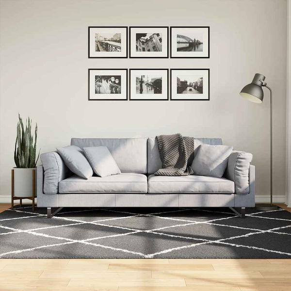 Musta ja kerma pörrömatto korkeanukkainen moderni 160x230cm