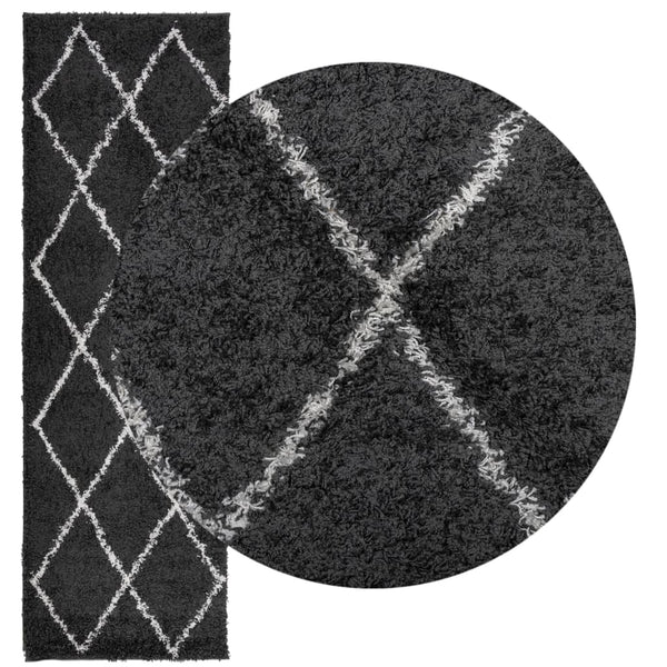 Musta/kerma pörrömatto pamplona 80x250cm korkeanukka, moderni