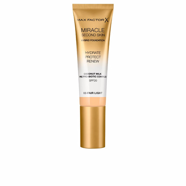 Max Factor Miracle Touch Toinen Iho Meikkivoide SPF20 #2-Fair Light on kevyt ja helposti levittyvä meikkivoide. Se tarjoaa tasaisen ja luonnollisen lopputuloksen, sopien erityisesti vaalealle iholle. Meikkivoide sisältää aurinkosuojakertoimen 20, suojaten ihoa auringon UV-säteiltä. Innovatiivinen koostumus muuttuu levitettäessä jauhemaiseksi, mikä tekee ihosta samettisen pehmeän. Voide peittää ihon pienet virheet ja punoituksen tehokkaasti, jättäen ihon kauniin hehkuvaksi.