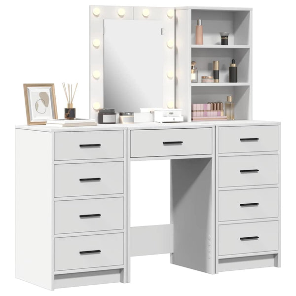 • Teknisen puun rakenne Tämä meikkipöytä on rakennettu kestävästä teknisestä puusta, joten se on tukeva ja luotettava. Sen sileä pinta takaa tyylin ja kestävyyden jokapäiväisessä käytössä.