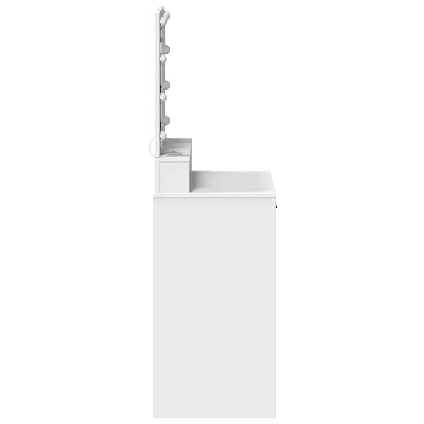 Tämä meikkipöytä on tyylikäs kaluste, joka sopii moderneihin makuuhuoneisiin. Minimalistinen muotoilu on simppeli mutta käytännöllinen. Sen suorakaiteinen muoto ja sileä pinta tekevät siitä kauniin keskipisteen eri makuuhuone tyyleille. Sisäänrakennetut LED-valot lisäävät sen viehätysvoimaa ja tekevät meikkaamisesta helppoa.