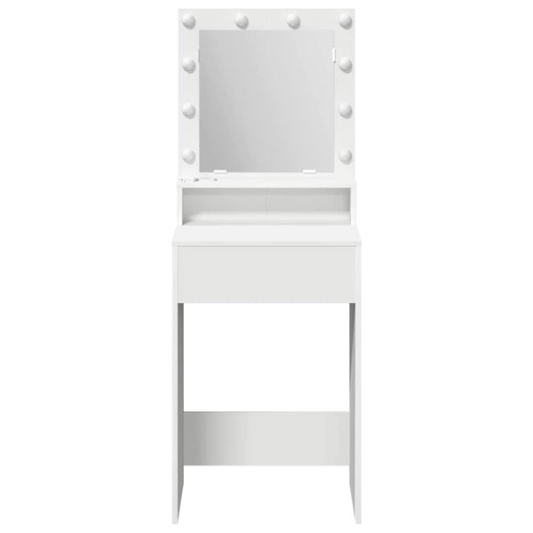 Tämä LED-valoilla varustettu meikkipöytä tuo tyylikkyyttä ja käytännöllisyyttä makuuhuoneeseesi. Suorakaiteen muoto ja selkeät linjat yhdistävät perinteisen muotoilun nykyaikaiseen tyyliin. Sekä kaunis että käytännöllinen, pöydän teksturoitu pinta parantaa sisustusta ja tarjoaa ratkaisuja säilyttämiseen ja organisointiin. Integroitu tasopeili tuo eleganssia ja on täydellinen meikin levittämiseen ja tavaroiden säilyttämiseen. Meikkipöytä, jossa on runsaasti säilytystilaa, on suunniteltu niille, jotka arvostavat järjestettyä elinympäristöä, pitäen kaikki tarpeelliset asiat kauniisti tallennettuna.