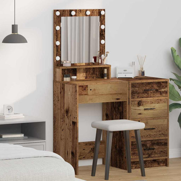 Tämä LED-valoilla varustettu meikkipöytä tuo tyylikkyyttä ja käytännöllisyyttä makuuhuoneeseesi. Suorakaiteen muoto ja selkeät linjat yhdistävät perinteisen muotoilun nykyaikaiseen tyyliin. Sekä kaunis että käytännöllinen, pöydän teksturoitu pinta parantaa sisustusta ja tarjoaa ratkaisuja säilyttämiseen ja organisointiin. Integroitu tasopeili tuo eleganssia ja on täydellinen meikin levittämiseen ja tavaroiden säilyttämiseen. Meikkipöytä, jossa on runsaasti säilytystilaa, on suunniteltu niille, jotka arvostavat järjestettyä elinympäristöä, pitäen kaikki tarpeelliset asiat kauniisti tallennettuna.