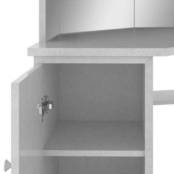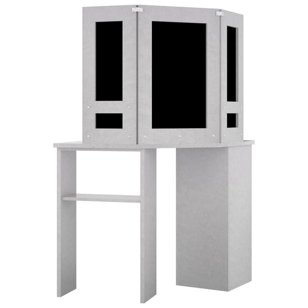 Betoninharmaa meikkipöytä kulmaan led-valoilla 111x54x141,5cm