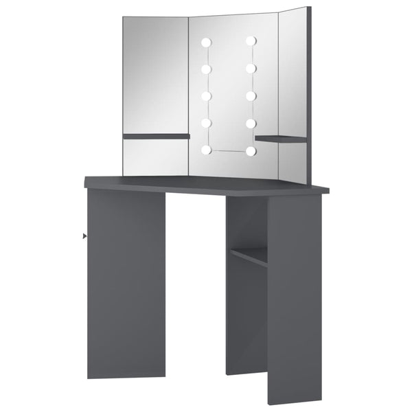 Harmaa meikkipöytä kulmaan led-valoilla 111x54x141,5cm