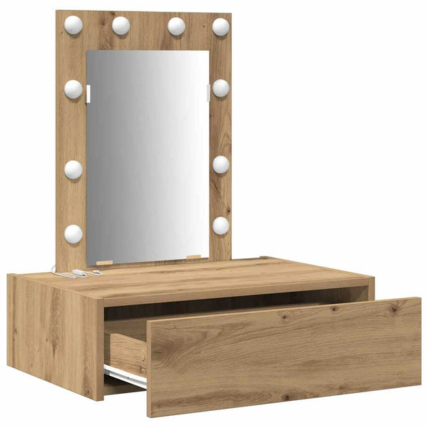 Ruskea meikkipöytä led -nauhavalot 60x40x70cm puinen