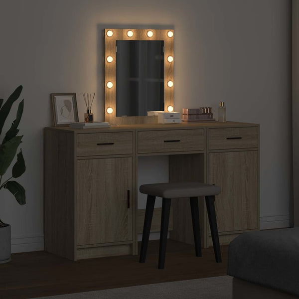 • Kestävä tekninen puu Tämä meikkipöytä on tehty laadukkaasta teknisestä puusta, joten se näyttää hyvältä ja kestää pitkään. Materiaalit kestää päivittäistä käyttöä ja sopii moderniin kotiin. Se on suunniteltu kestämään kulumista ja pitämään tyylinsä ajan myötä, tarjoten sinulle tukevan paikan kaikille grooming-tarpeillesi.