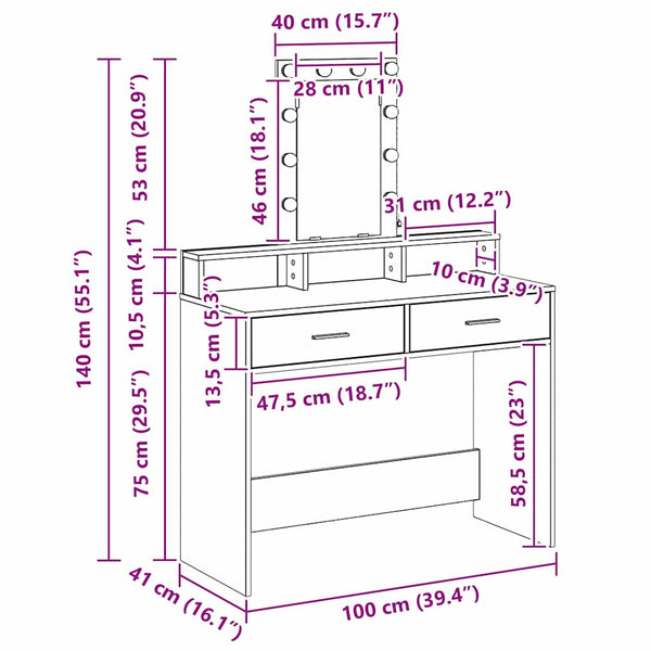 - Integroitu LED-valaistus Meikkipöydässä on säädettävä LED-valaistus, joten meikkaaminen ja kauneudenhoito on helppoa mihin aikaan vuorokaudesta tahansa. Nämä LED-valot myös säästävät energiaa ja lisäävät modernia tyyliä.