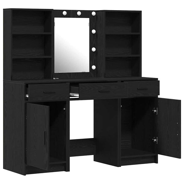 Musta tammi meikkipöytäsarja hyllyllä Raicica 50x41x135cm (3 pcs)