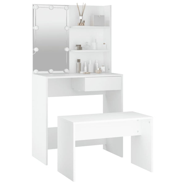 Valkoinen meikkipöytäsarja led-valoilla puinen
