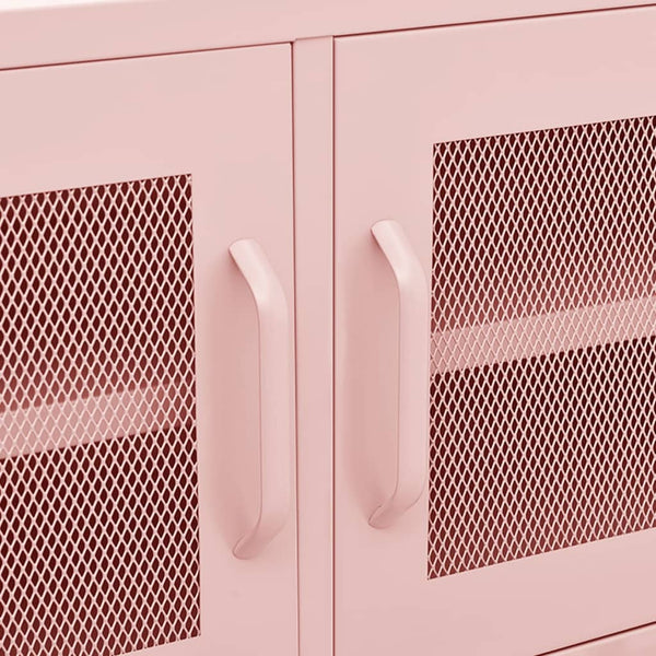 TV-tason teräsrakenne tekee siitä todella tukevan ja kestävän. Pohjassa olevat tasaajat antavat sinun säätää sen korkeuden haluamallesi tasolle. TV-tasossa on kaksi verkko-ovea, joiden takana on hylly, joten siinä on reilusti tilaa DVD-levyille, lehdille ja muille tärkeille tavaroille. Takapaneelissa on myös neljä reikää, jotta voit järjestää media- ja sähkölaitteiden johdot. Se on myös helppo puhdistaa kostealla liinalla.