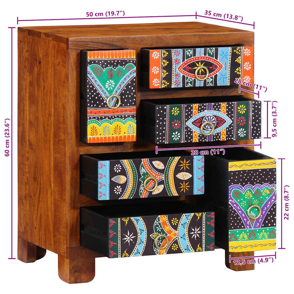Monivärinen senkki 50x35x60 massiivipuu akaasia
