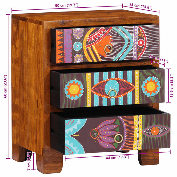 Monivärinen senkki 50x35x60 massiivipuu akaasia