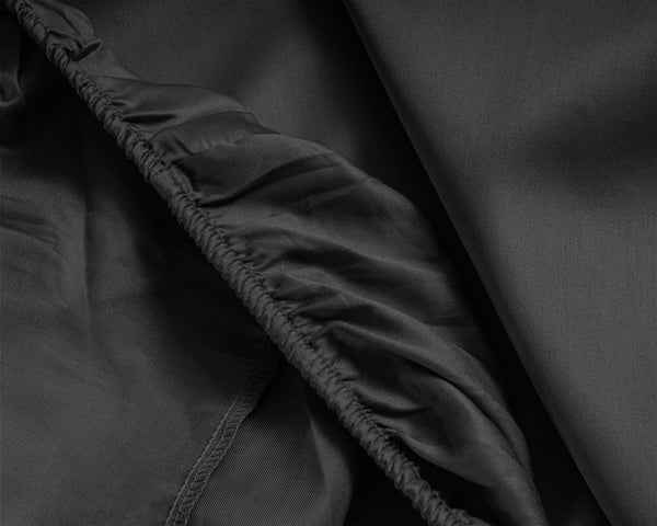 Musta Puuvillasatiini Muotoonommeltu Lakana