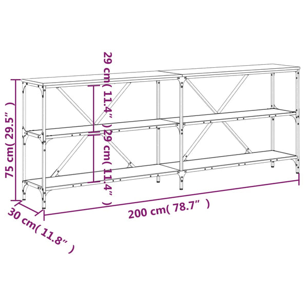 Musta konsolipöytä 200x30x75cm puinen ja rauta