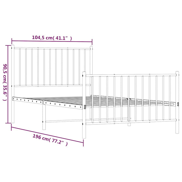 Musta metallinen sängynrunko päädyillä 100x190cm
