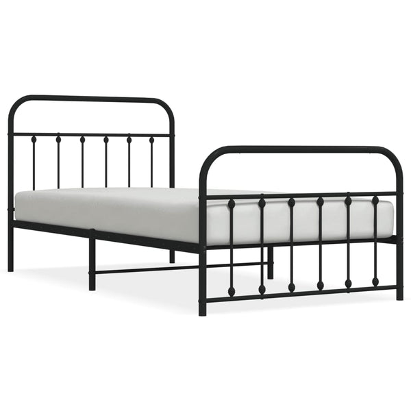 Musta metallinen sängynrunko päädyillä 107x203cm