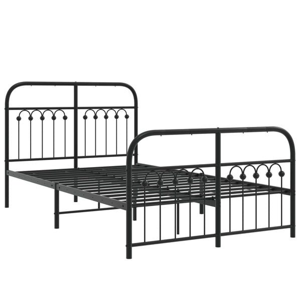 Musta metallinen sängynrunko päädyillä 120x190cm