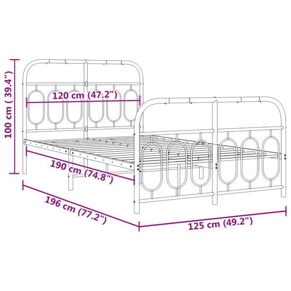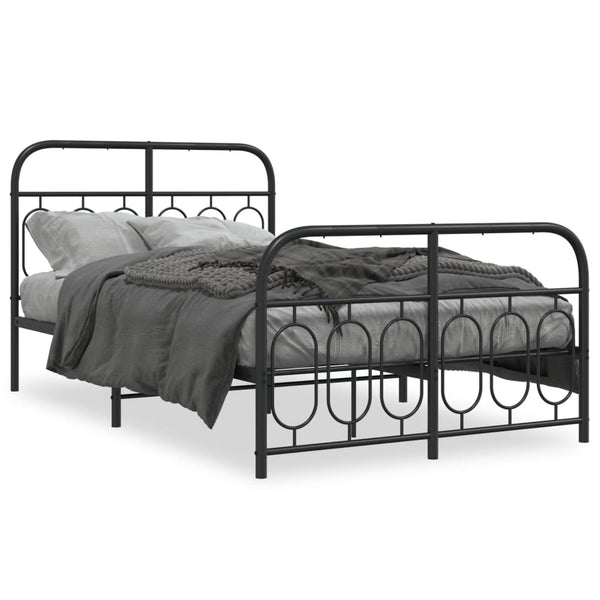Musta metallinen sängynrunko päädyillä 120x190cm