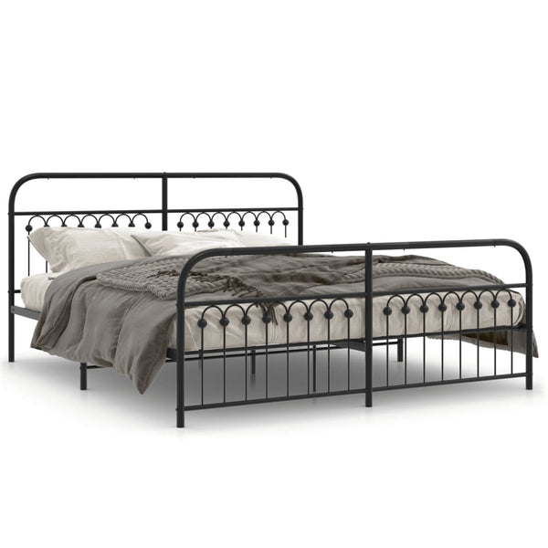 Musta metallinen sängynrunko päädyillä 183x203cm