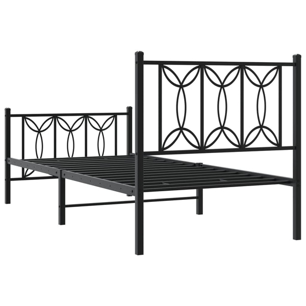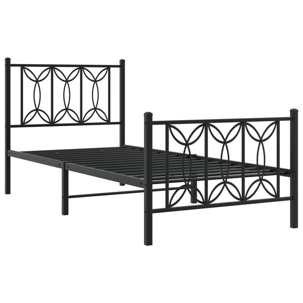 Musta metallinen sängynrunko päädyillä 75x190cm