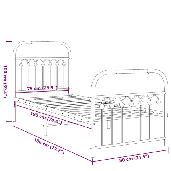 Musta metallinen sängynrunko päädyillä 75x190cm
