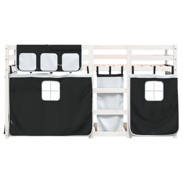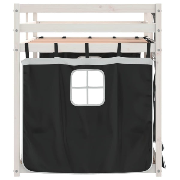 Mustavalkoinen parvisänky verhoilla 80x200cm mänty
