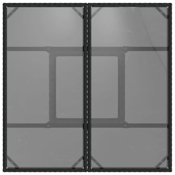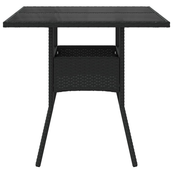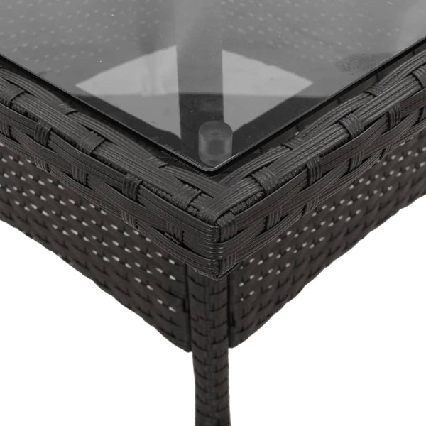 Musta puutarhapöytä 80x80x75cm lasilevyllä polyrottinki