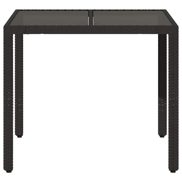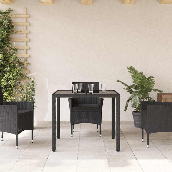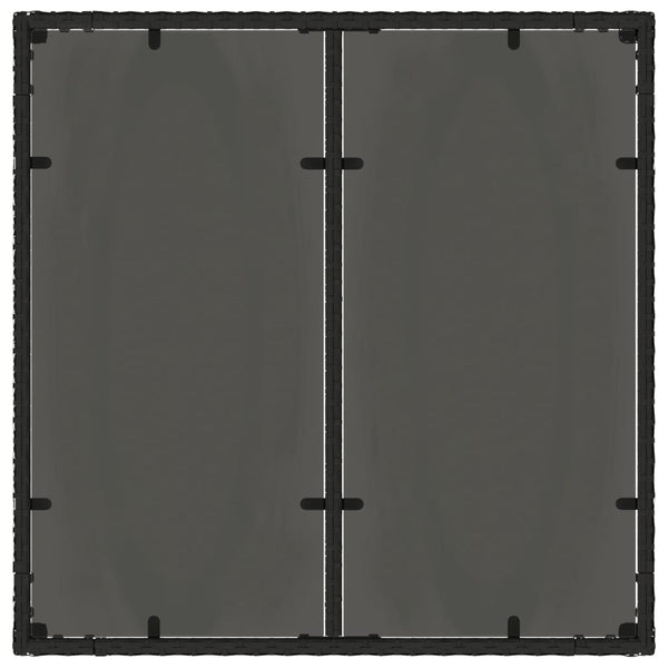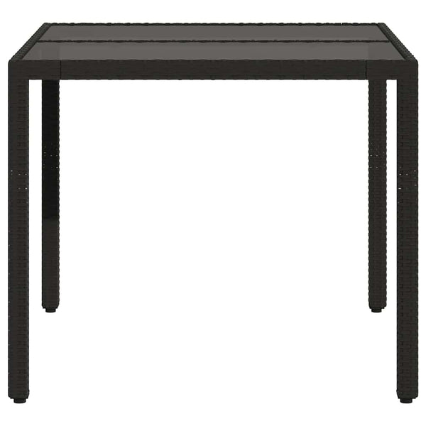 Musta puutarhapöytä 90x90x75cm lasilevyllä polyrottinki
