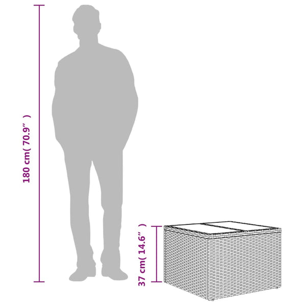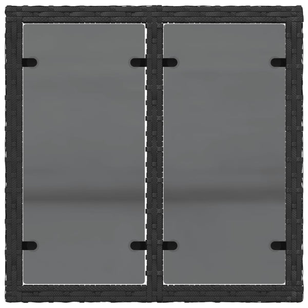 Musta puutarhapöytä 55x55x37cm lasipöytälevyllä polyrottinki