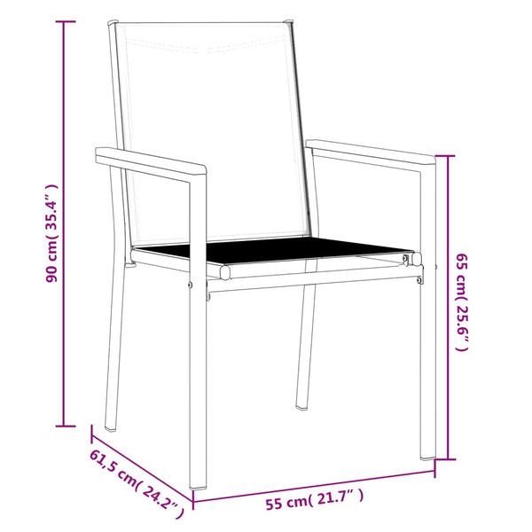 Musta puutarhatuolit 55x61,5x90cm 2 kpl textilene ja teräs