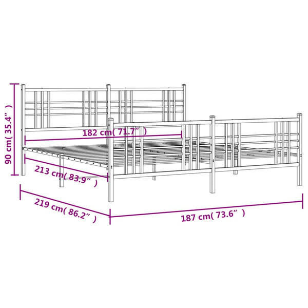 Musta metallinen sängynrunko päädyillä 183x213cm
