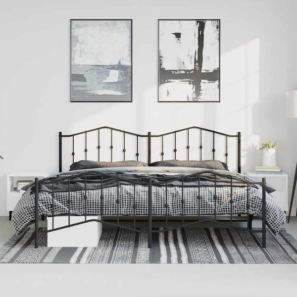 Musta metallinen sängynrunko päädyillä 193x203cm