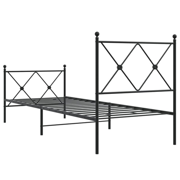 Musta metallinen sängynrunko päädyillä 75x190cm