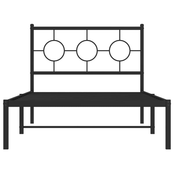 Musta metallinen sängynrunko päädyllä 100x190cm