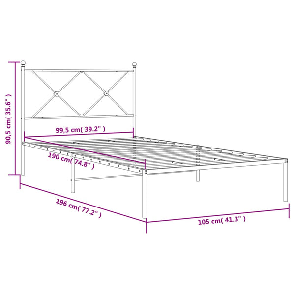 Musta metallinen sängynrunko päädyllä 100x190cm