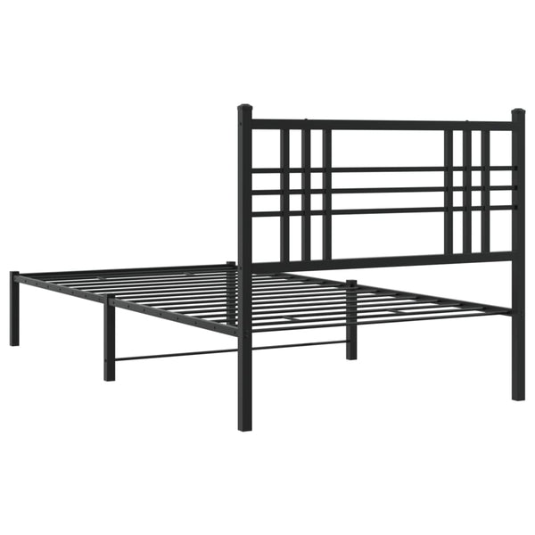 Musta metallinen sängynrunko päädyllä 100x190cm