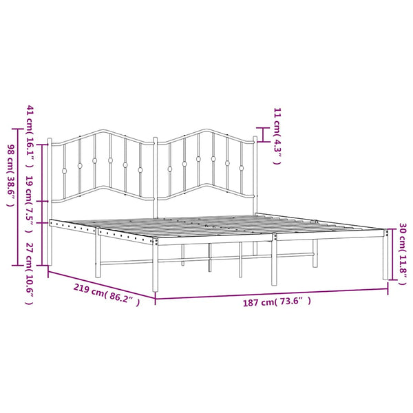 Musta metallinen sängynrunko päädyllä 183x213cm