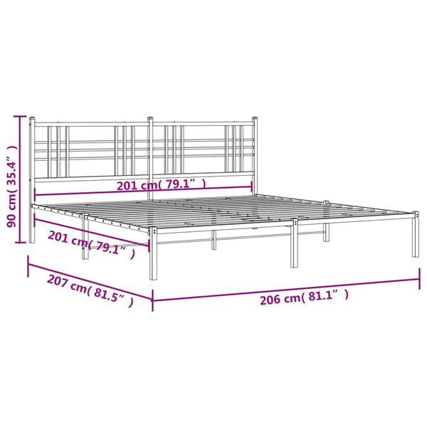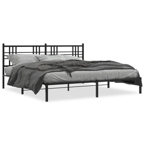 Musta metallinen sängynrunko päädyllä 200x200cm